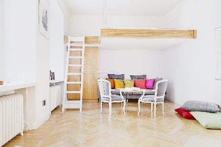 為了不讓空間過于壓抑,在家具的選擇上可以選擇小巧輕便的家具。如沙發床、可收納的椅子等可以隨意組合、拆裝、收納的家具就非常適合,小戶型家具實行縱向發展的原則,高腳床就很好地滿足這點,可以收納更多物品。
