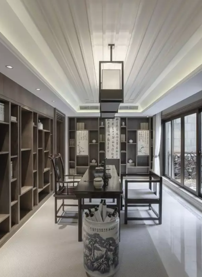打造新中式風格的家居空間,除了要從建筑空間尺度和功能區域的過渡關系里下功夫,更要從家居、家具的細節,比如字畫、匾幅、掛屏、盆景、瓷器、古玩、屏風、博古架等中國傳統室內的陳設,還有崇尚自然情趣的花鳥魚蟲的圖案變化入手——