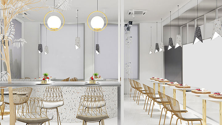 奶茶店空間合理布置是比較重要的事項,我們必須合理地設計各項功能區的位置。如:西點展示區、散點裱花奶茶展示區、裱花操作間、現烤區、收銀吧臺、等候休閑區等等。