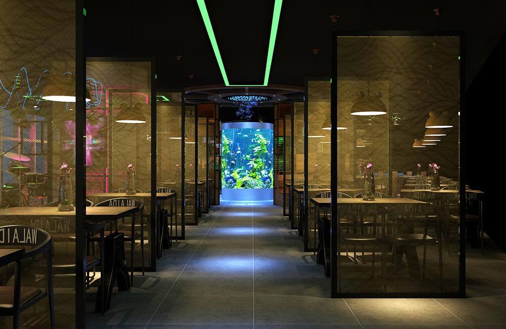 店面內應用掛畫或是墻繪等裝飾品,建議應用射燈實現重點照明。由于射燈產生的明暗相間的光影功效,會提升燒烤店的氛圍,也會讓燒烤店看起來更有情調。