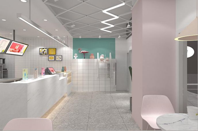 借助“光效應”。昏暗和狹小是孿生兄弟,寬敞和明亮如影隨形。盡可能地引入自然光,可以讓門頭開闊些,選擇落地玻璃窗。如果沒有自然光,把人工照明做充分,提高照度,也不失為是“增肥”奶茶店的一種好方法。