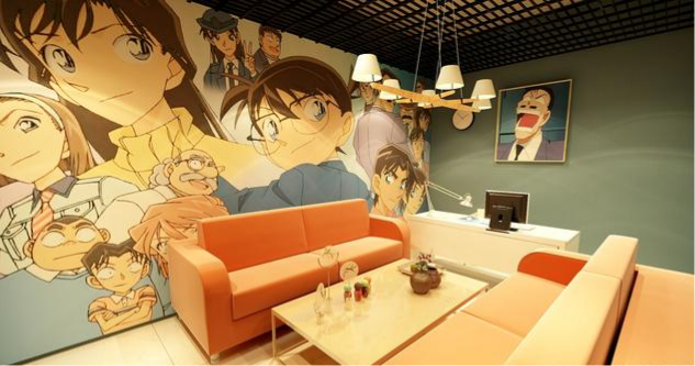 總體分成一個接待吧臺,休息區(qū),搜證室,四個主題房間,軍統(tǒng)主題,柯南主題,中式主題,恐怖主題
