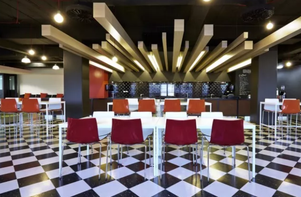 設計理念的重要元素包括為員工設計的咖啡室,能夠讓他們在此放松。他們能夠在那用餐,餐廳布置在另外一邊,剩下的凳子是給帶飯的員工坐的。這里的地板也是員工的制服,不過也是傳統的地板風格,增強了空間的活力感。